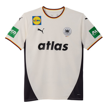 Die offizielle Sponsoren-Version mit den Logos von Lidl, DKB, Alsco und atlas entspricht exakt dem Trikot, das die Nationalspieler auf dem Spielfeld tragen.